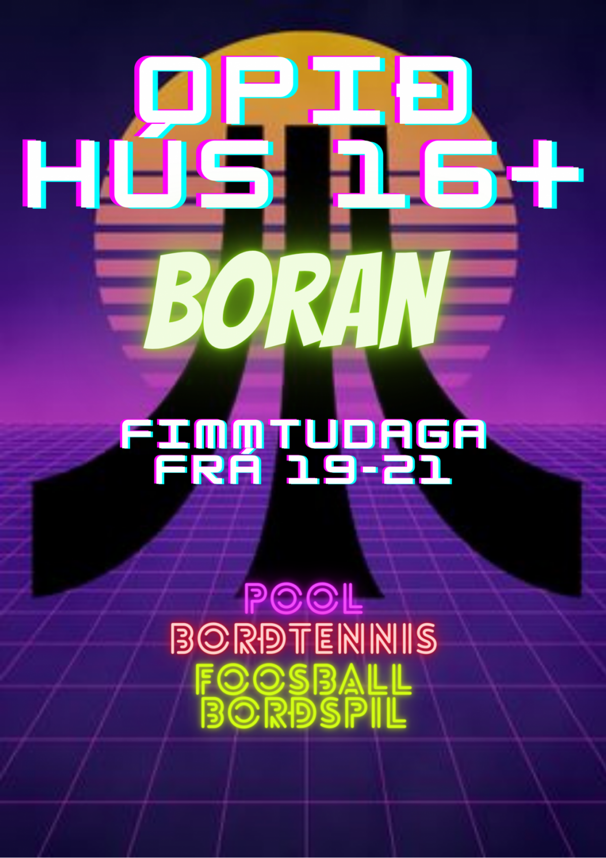 Tekin hefur verið sú ákvörðun að hafa félagsmiðstöðina Boruna opnar á fimmtudagskvöldum frá 19-21 fyrir 16 ára og eldri. Til að byrja með verður hægt að spila borðspil, pool, borðtennis og foosball. Til skoðunar er svo að bæta við starfið þegar á líður.