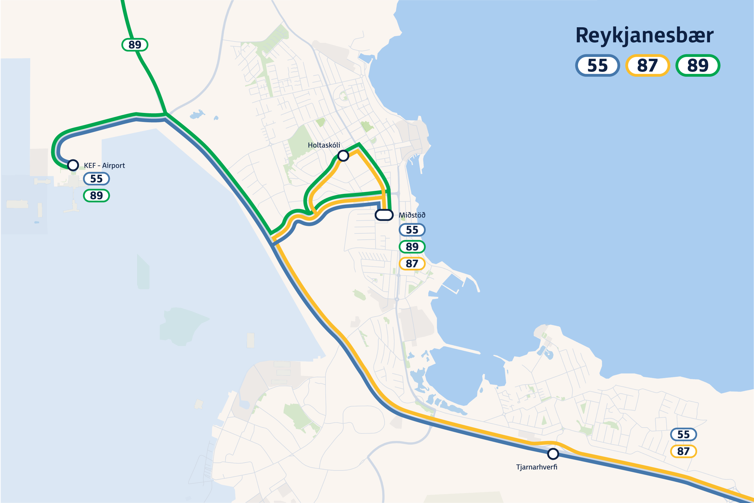 Akstursleiðir 87 og 89 fá aukið vægi í að sinna atvinnu- og skólasókn innan Suðurnesja. Leið 89 mun aka í völdum ferðum að Keflavíkurflugvelli, en fyrsta ferð á virkum dögum verður kl. 05:12 frá Garði og verður vagninn við Keflavíkurflugvöll kl. 05:30. Þá munu leiðir 89 og 87 aka að Fjölbrautaskóla Suðurnesja í öllum ferðum sem farnar eru til og frá Miðstöð Reykjanesbæ.