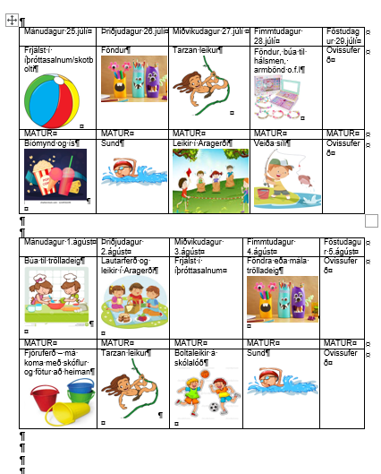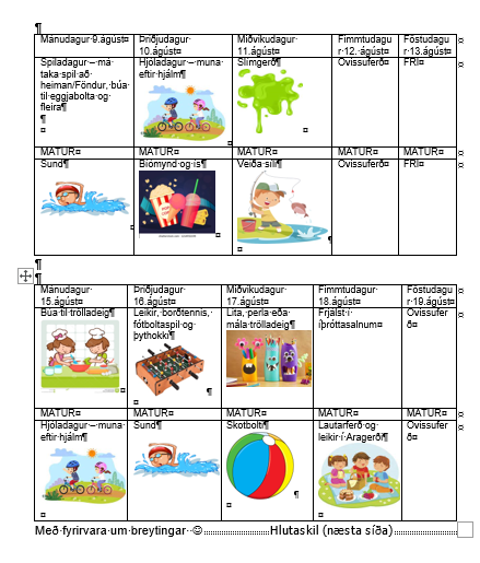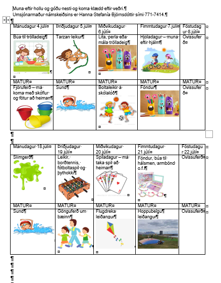 Dagskrá á seinni hluta leikjanámskeiðsins