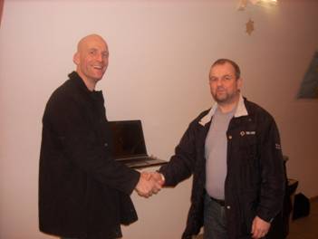 Dregið var í happadrætti Meistaraflokksráðs Þróttar í knattspyrnu nú fyrir skemmstu. Fjöldi glæsilegra vinninga voru dregnir út og var m.a. stórglæsileg HP fartölva í aðalvinning. Sá heppni sem vann fartölvuna heitir Haukur Þórisson en á myndinni hér til hliðar má sjá hann taka við gripnum úr höndum Gunnars Helgasonar leikmanns meistaraflokks Þróttar í knattspyrnu. Meistaraflokksráð þakkar kærlega fyrir stuðninginn sem fólk sýndi með því að kaupa happadrættismiða sem og öllum þeim fyrirtækjum sem styrktu þá með því að gefa vinninga.