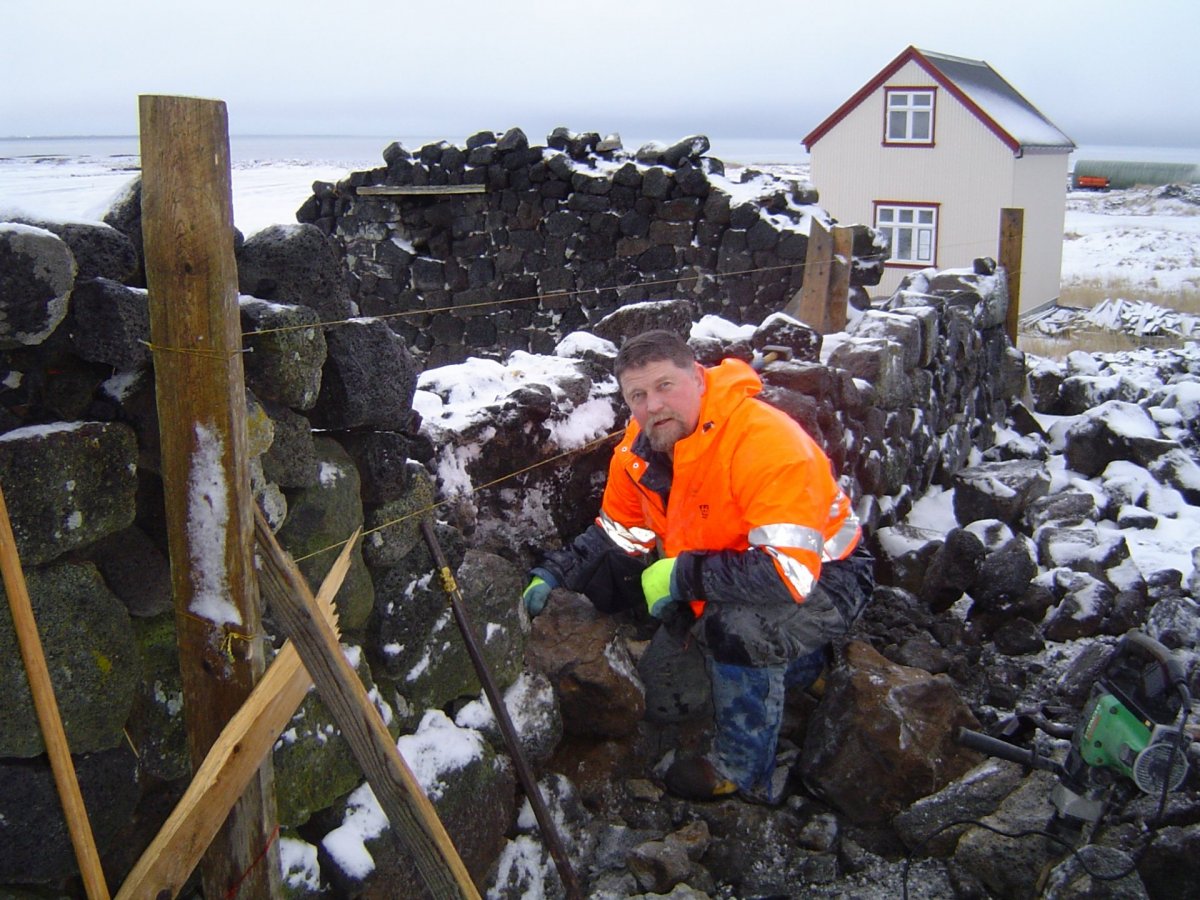 Minjafélagið hefur fengið til liðs við sig Guðjón Kristinsson grjóthleðslumann og skrúðgarðyrkjumeistara við endurbyggingu á hlöðunni Skjaldbreið á Kálfatjörn. Í haust leiðbeinti Guðjón á grjóthleðslunámskeið sem haldið var hér í bæ að tilstuðlan Miðstöðvar símenntunar á Suðurnesjum. Á námskeiðinu var meðal annars unnið við veggi hlöðunnar.