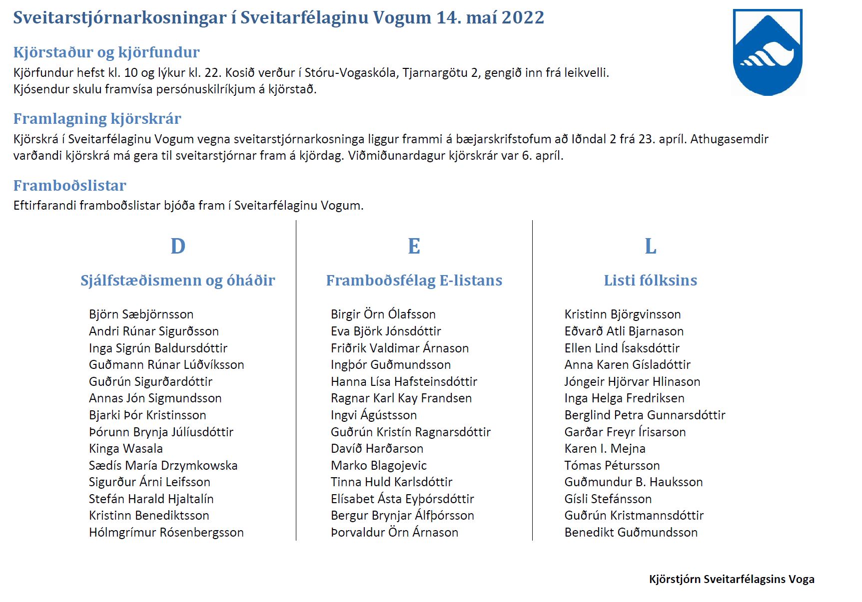 Framboðslistar fyrir sveitarstjórnarkosningar