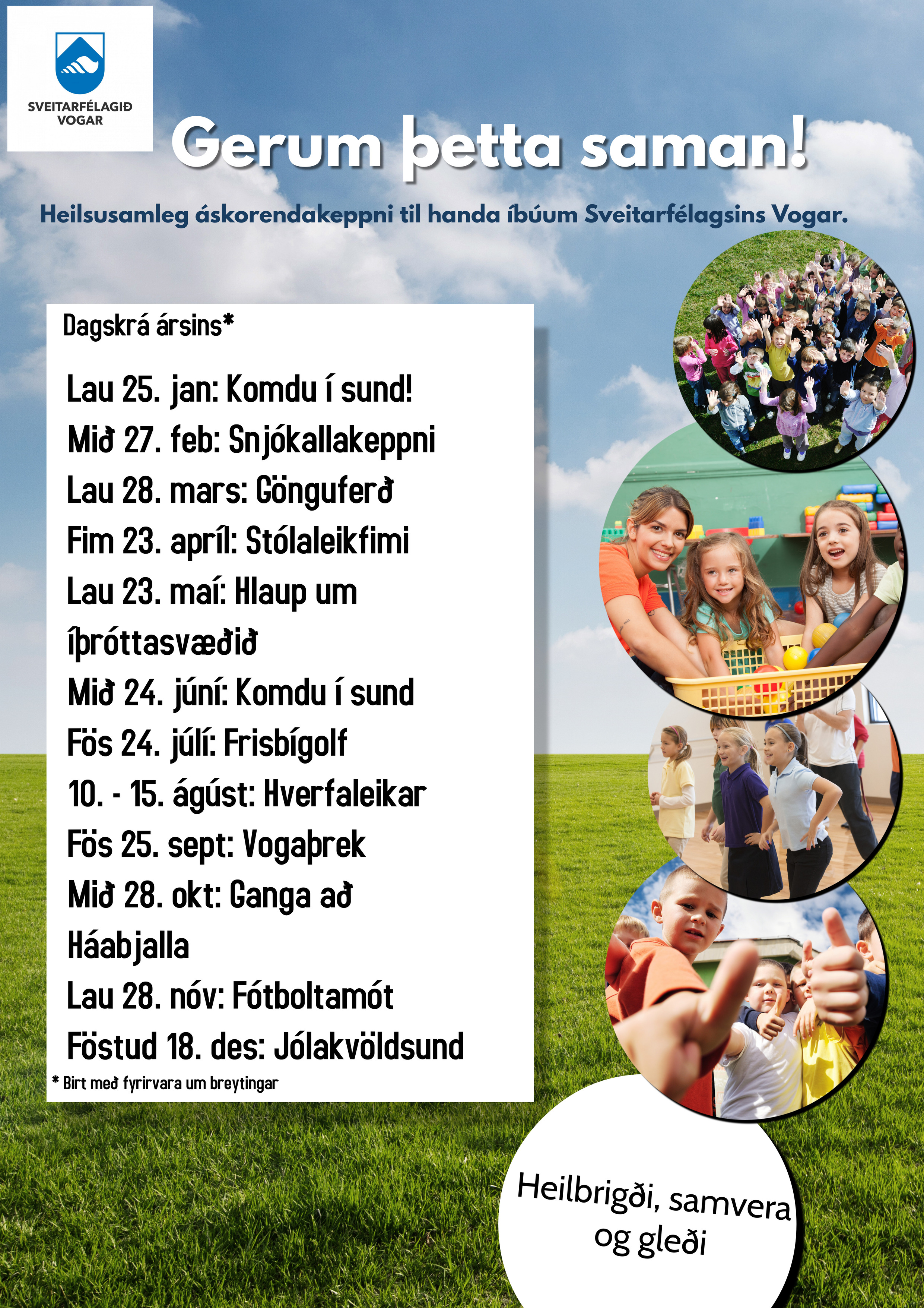 Í tilefni þess að Sveitarfélagið Vogar er búið að skrifa undir samning við Landlækni um að vera Heilsueflandi Samfélag, ætlum við að setja á laggirnar skemmtilega áskorendakeppni á meðal íbúa.