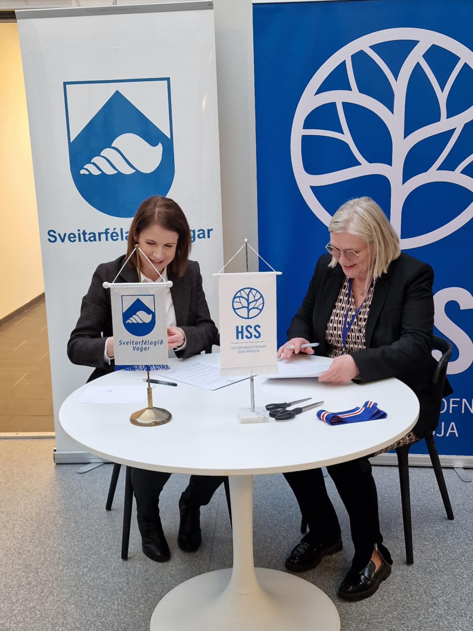 Guðrún P. Ólafsdóttir, bæjarstjóri Sveitarfélagsins Voga og Guðlaug Rakel Guðjónsdóttir, forstjóri HSS, undirrita samninginn