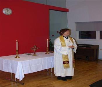 Sr. Bára Friðriksdóttir sóknarprestur í Kálfatjarnarkirkju hélt helgistund í félagsstarfi eldri borgara í Álfagerði siðastliðinni fimmtudag, þar sem þessar myndir voru teknar.