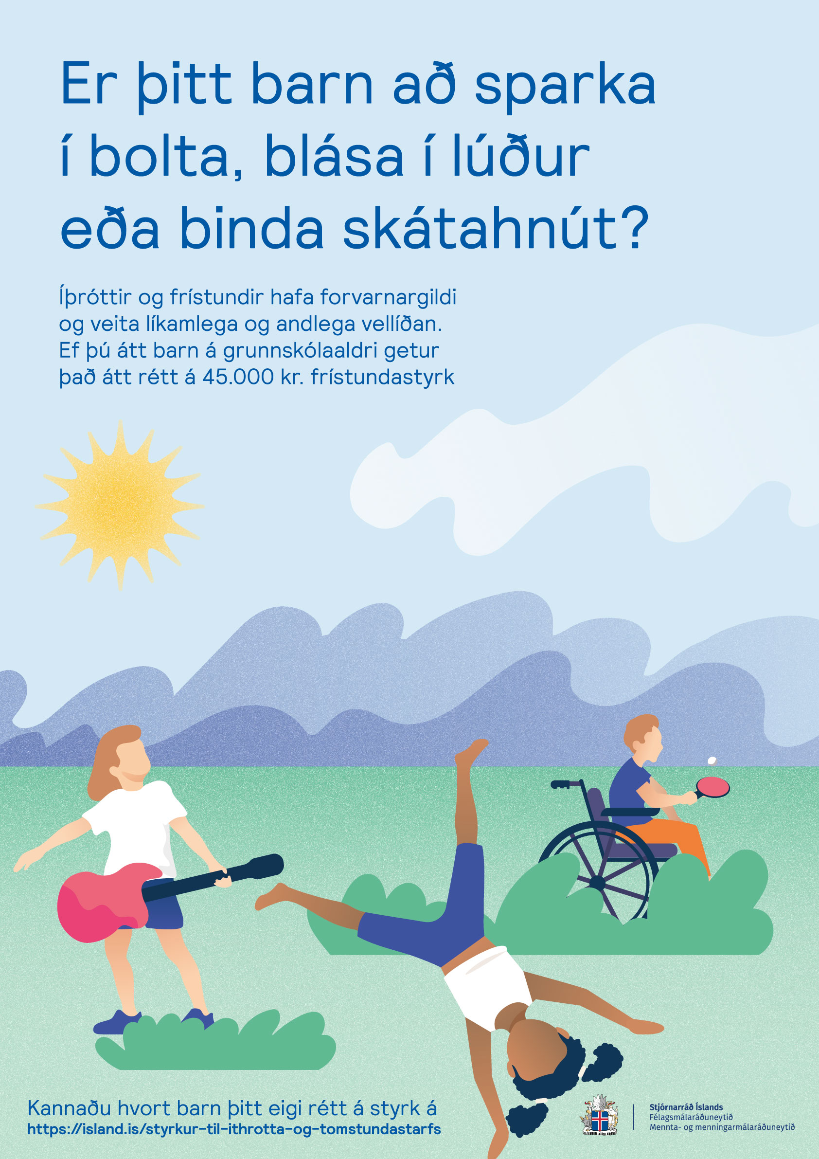 Við vekjum athygli á því að enn er hægt að sækja um sérstakan íþrótta- og tómstundastyrk fyrir börn sem búa á tekjulægri heimilum en það er hægt til 15. apríl. Styrkurinn er 45.000 kr. á hvert barn.