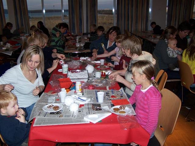 Laugardaginn 29. Nóvember sl. hélt foreldrafélag Stóru-Vogaskóla jólaföndurstund í Tjarnarsalnum. Hvatti félagið og bauð öllum nemendum skólans að mæta með yngri systkinum, foreldrum og öfum og ömmum. Óhætt er að segja að nemendur og aðstandendur þeirra hafi tekið foreldrafélagið á orðinu og mættu 120 manns í jólaföndrið og áttu saman notalega föndurstund með fjölskyldu og vinum við upphaf aðventunnar.