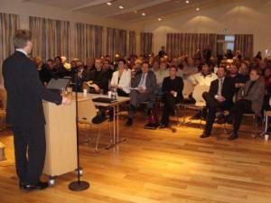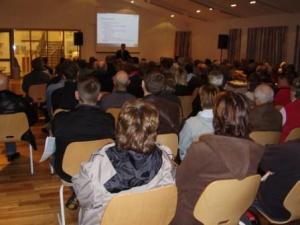 Vel var mætt á kynningafund vegna komandi kosninga um sameiningu Vatnsleysustrandarhrepps og Hafnarfjarðar. Fundurinn var haldinn í nýjum samkomusal við Stóru-Vogaskóla og vel á annað hundrað manns tóku þátt í honum. Ráðgjafar frá ParX fóru yfir viðamikla skýrslu sem tekin hefur verið saman um núverandi stöðu í sveitarfélögunum tveimur og hvers væri að vænta ef af sameiningu yrði. Oddvitar sveitarfélaganna þeir Jón Gunnarsson og Lúðvík Geirsson héldu einnig framsögu um málið.