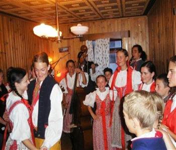Mynd: Frá heimsókn Osminka þjóðdansahópsins í Minni- Voga