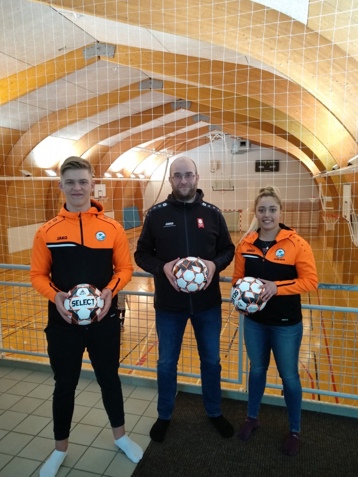 Nesbúegg færði nýverið Þrótti Vogum styrk til fótboltakaupa. Á myndinni er Baldvin Hróar Jónsson frá Nesbúeggjum með Petru Ruth Rúnarsdóttir formanni UMFÞ og, Róbert Andra Drzymkowski þjálfara hjá Þrótti Vogum.