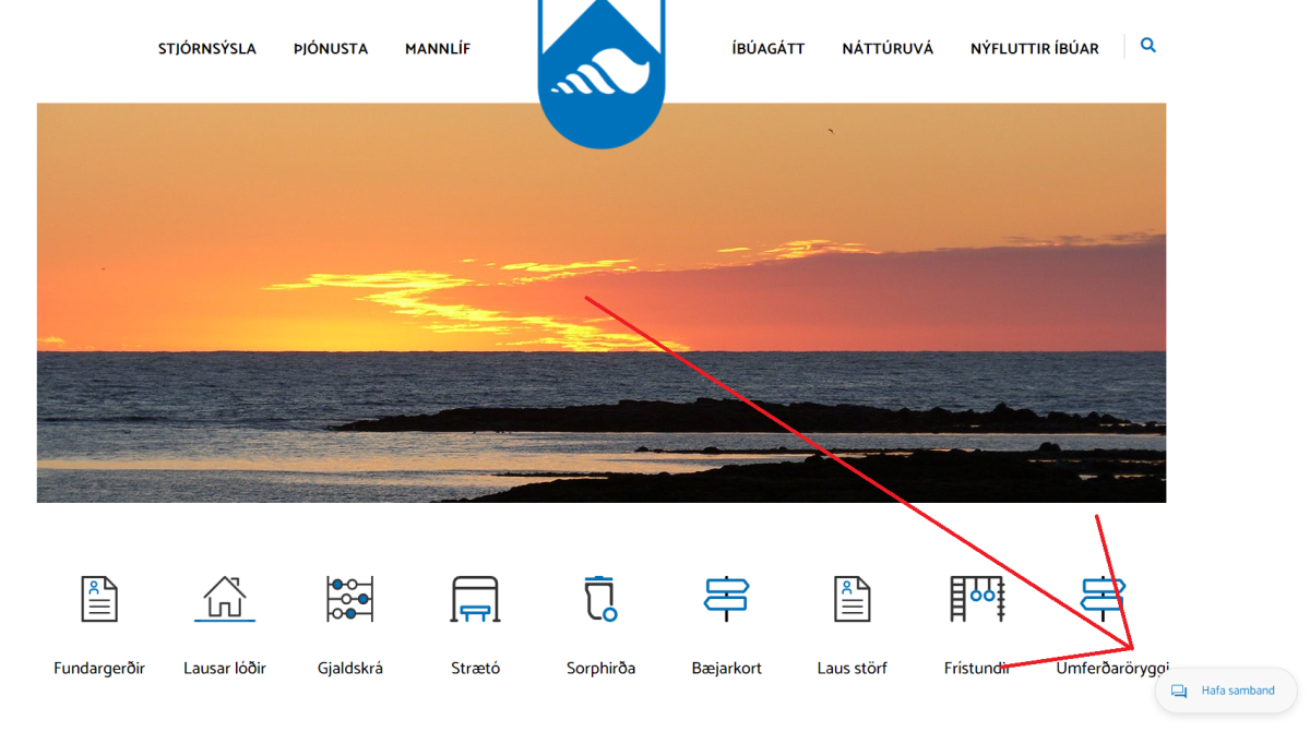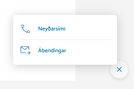 Á heimasíðu okkar höfum við bætt við hnapp sem heitir "Hafa samband". Hnappurinn er staðsettur niðri í hægra horninu á síðunni okkar. Sé ýtt á hnappinn koma upp tveir valmöguleikar, annarsvegar "Neyðarsími" og hinsvegar "Ábendingar".