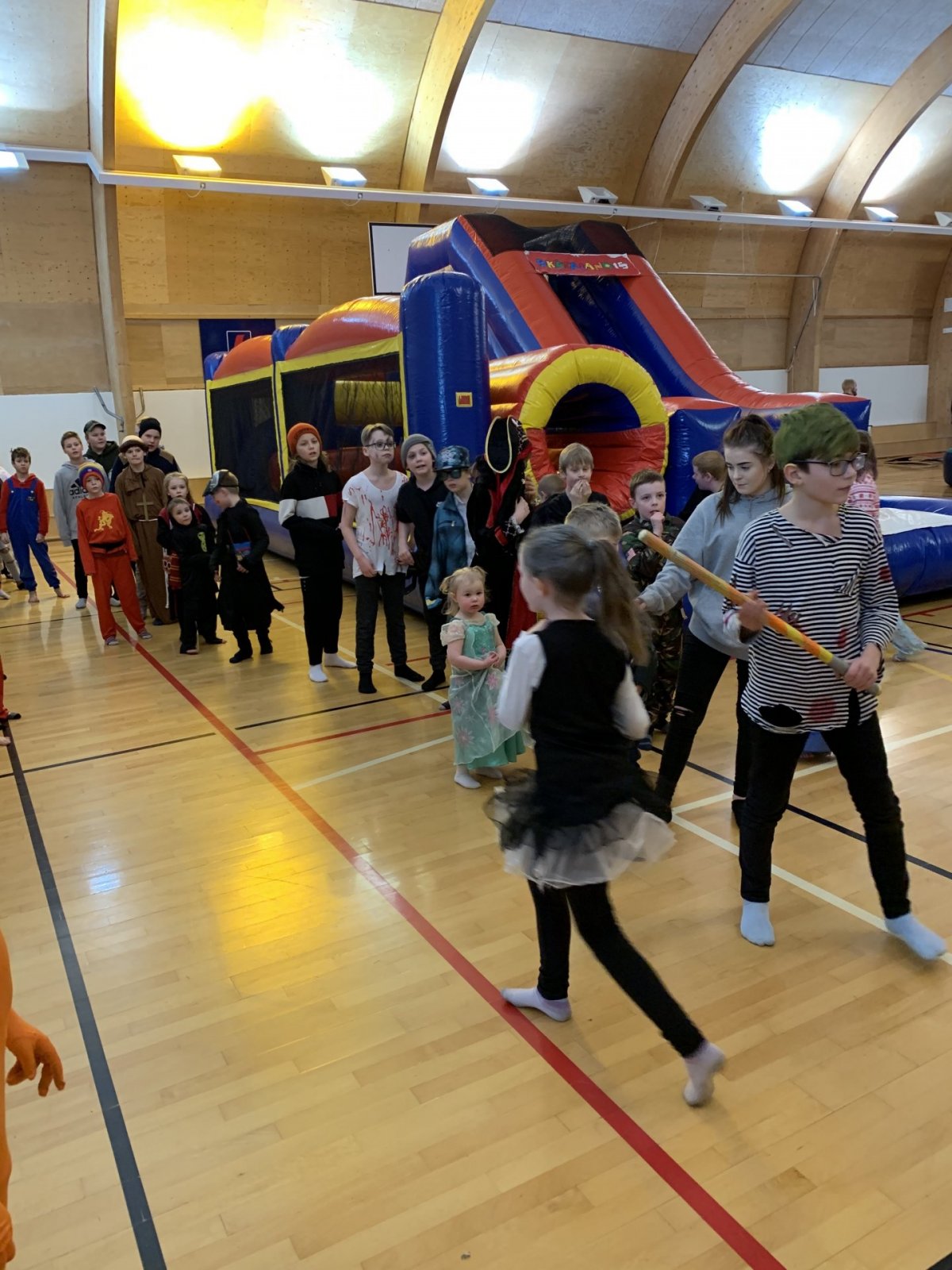 Öskudagsskemmtun var haldin í Íþróttamiðstöðinni að venju. Boðið var upp á andlitsmálun, hoppukastala og risarólu.