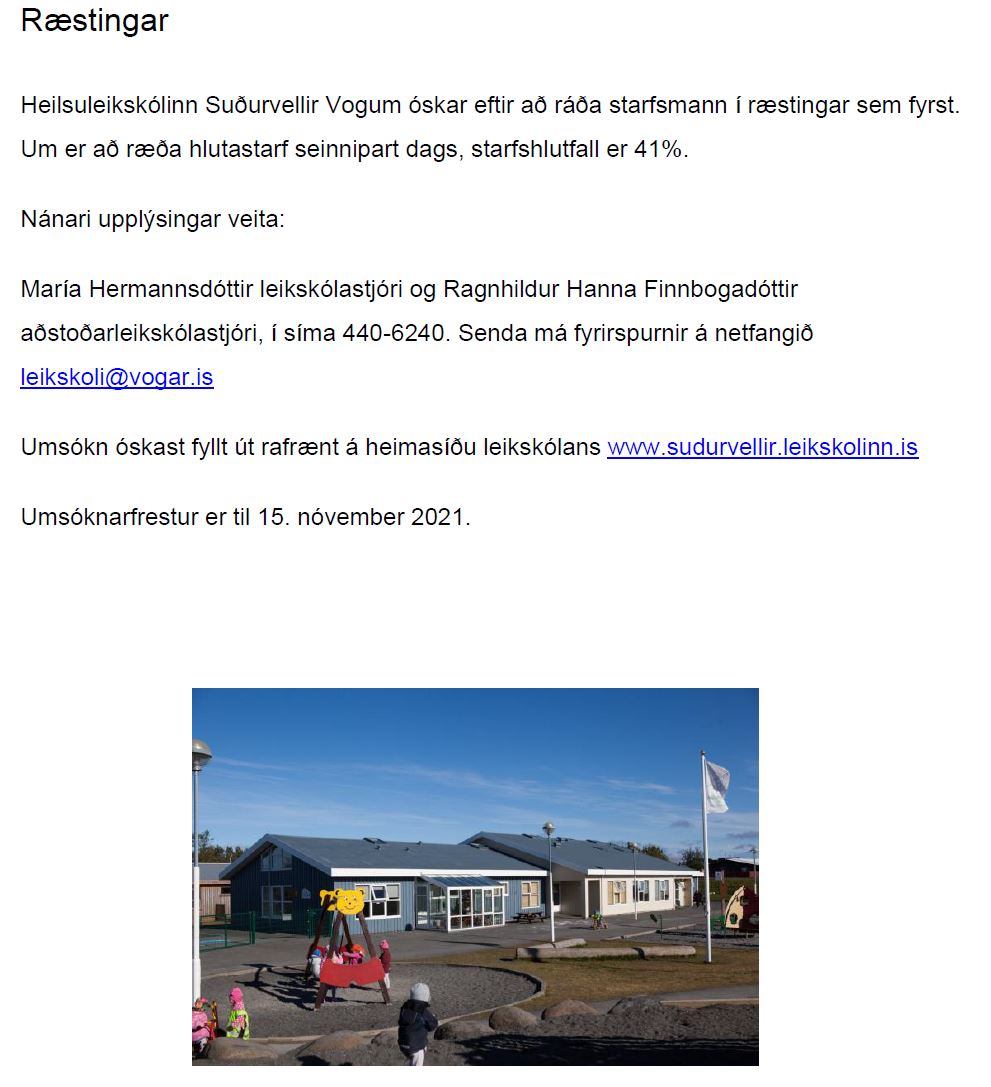 Ræstingar á Heilsuleikskólanum Suðurvöllum