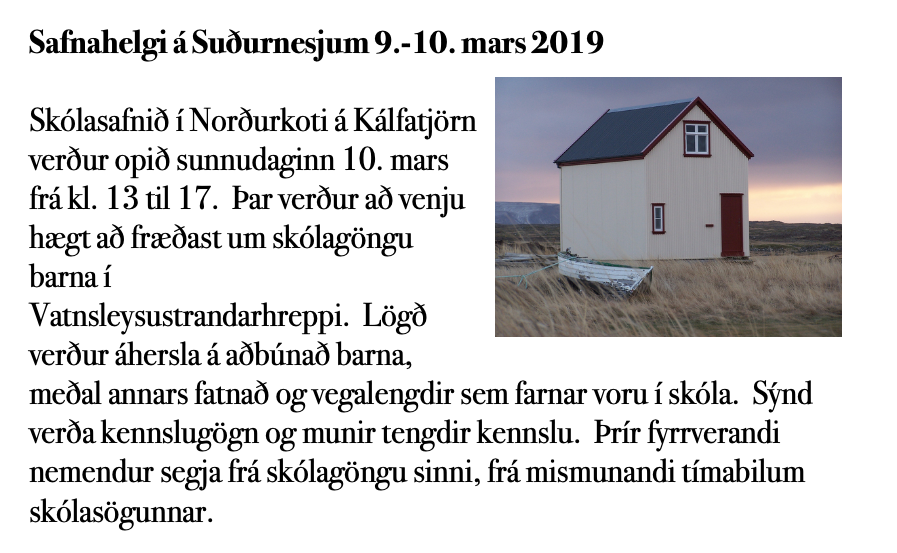 Safnahelgi á Suðurnesjum er haldin árlega. Í ár er hún um næstu helgi, 9. Og 10. mars. Hér í Vogunum er boðið upp á fjölbreytta dagskrá sem verður kynnt rækilega í fjölmiðlum.