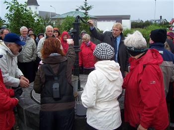 Myndin var tekin þegar brunnurinn við Brunnstíg var vígður eftir endurgerð.