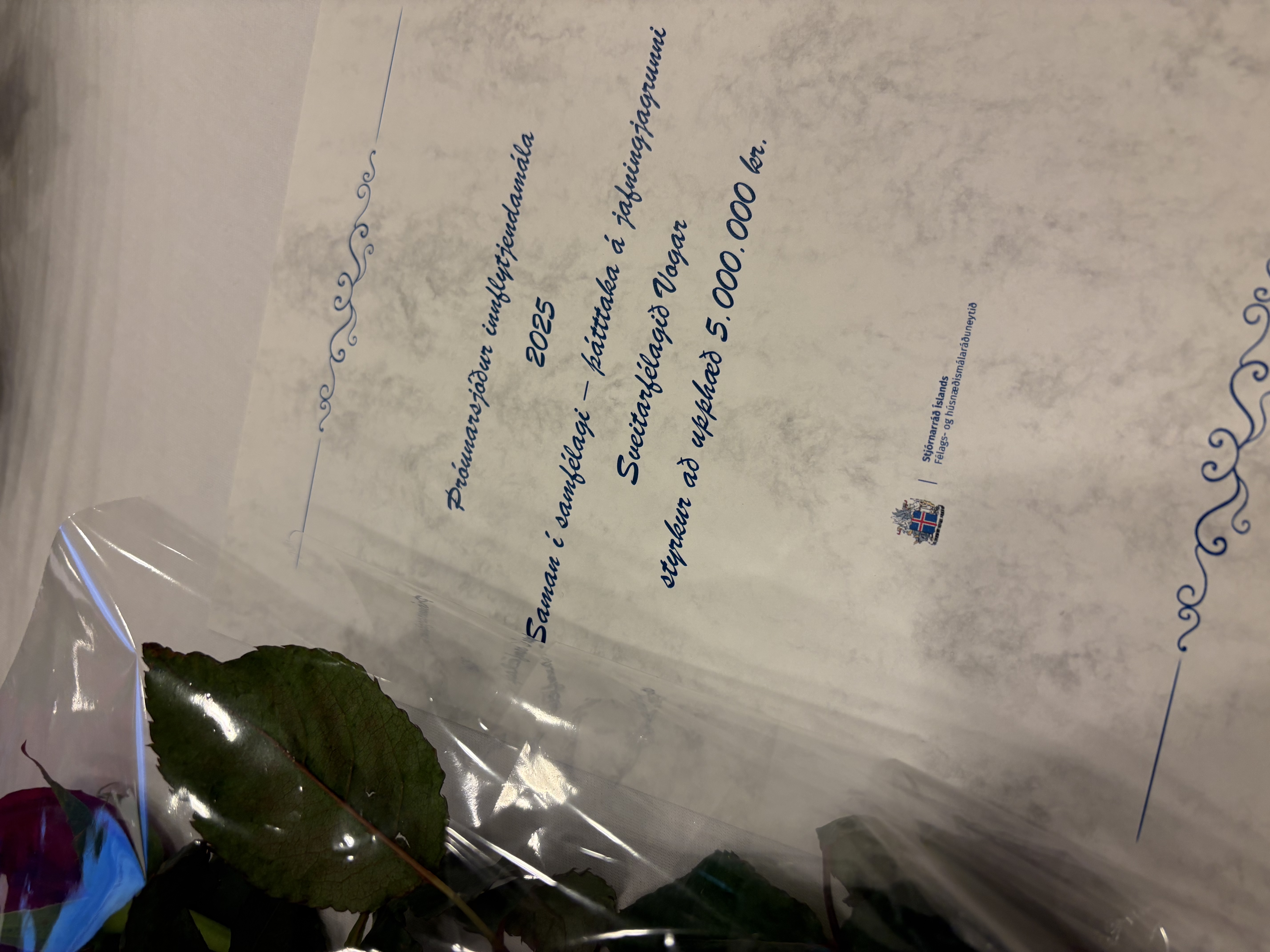 Í síðustu viku tók Hólmfríður Jennýjar Árnadóttir sviðsstjóri fjölskyldusviðs við styrk fyrir hönd Sveitarfélagsins Voga fyrir verkefni sem ber heitið: Saman í samfélagi - þátttaka á jafningjagrunni. Það ríkir mikil ánægja með þessa veglegu upphæð sem mun nýtast vel til að sinna inngildingu í fjölmenningarsamfélagi.
