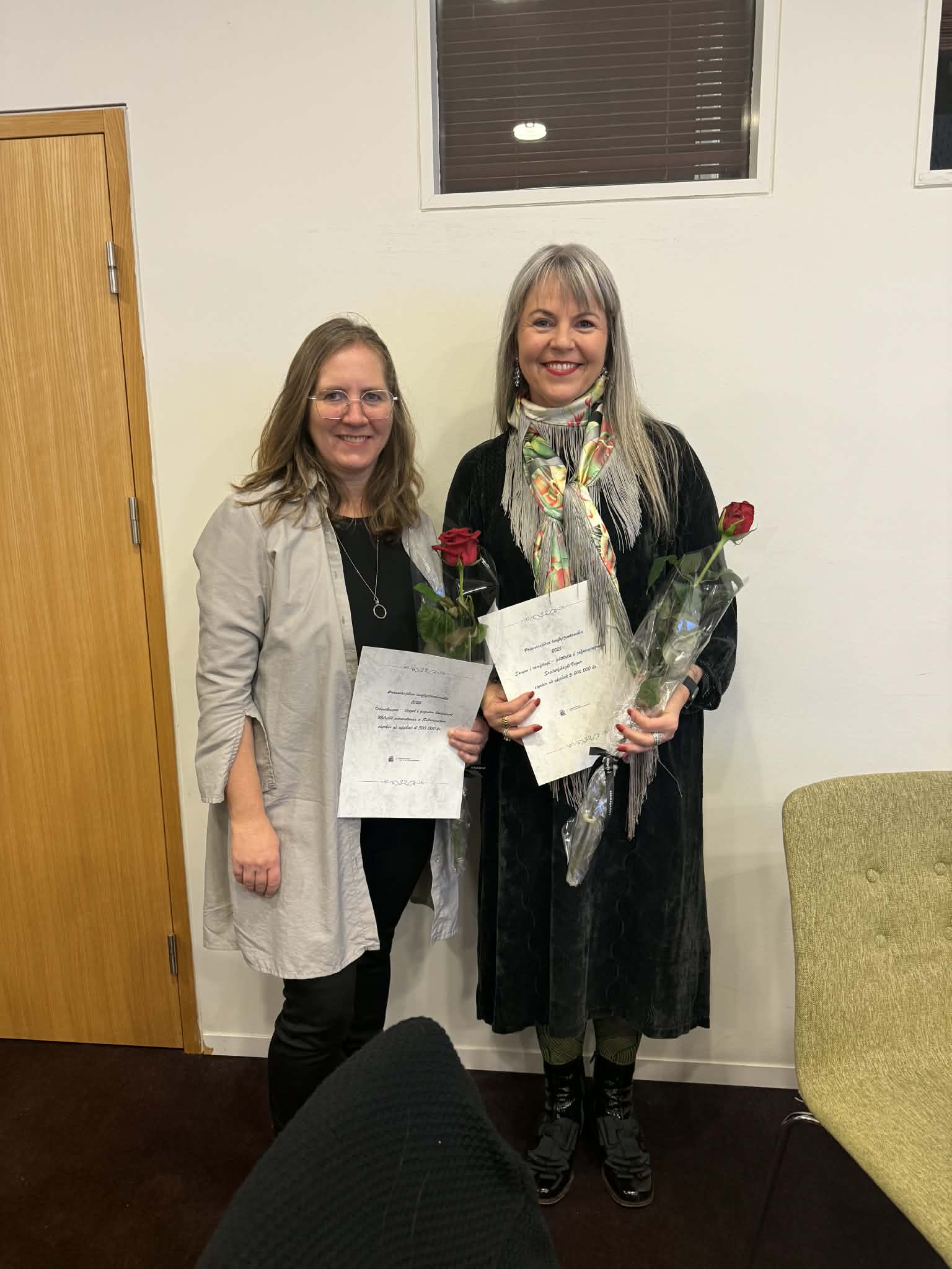 Guðjónína Sæmundsdóttir, forstöðukona MSS (Miðstöð símenntunar á Suðurnesjum) ásamt Hólmfríði Jennýjar Árnadóttur, sviðstjóra Fjölskyldusviðs sem tók á móti styrknum fyrir hönd Sveitarfélagsins Voga