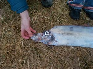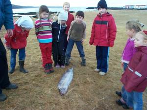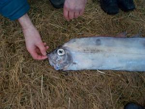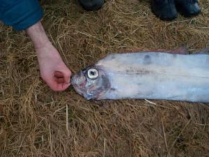 Nokkrir ungir nemendur Stóru-Vogaskóla fundu í gær (4. mars) mjög sjaldgæfan fisk í fjörunni neðan við skólann. Fiskur þessi heitir Vogmær og er miðsævis djúpfiskur, aðallega á 500 - 600 m dýpi. Hann verður kynþroska um 14 ára aldur og er þá orðinn 2,4 m langur. Mög lítið er vitað um lífshætti hans. Hér við land finnst hann oft rekinn í flæðarmáli en veiðist sjaldan. Hefur fundist frá Madeira til Noregs og við Ísland og SV-Grænland.