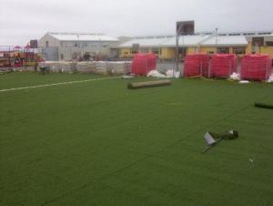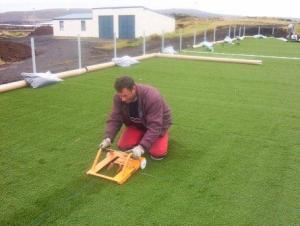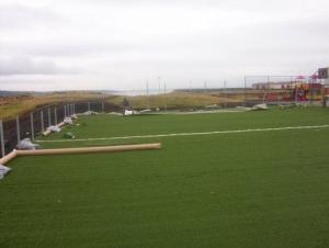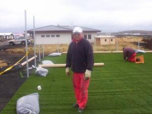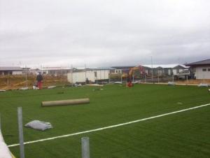 Framkvæmdir eru hafnar við að útbúa sparkvöll við Stóru-Vogaskóla. Innlendir verktakar sjá um undibúningsvinnu en gerfigrasefnið er þýskt, unnið af tveim Slóvökum og einum Portúgala. Þeir eru búnir að fara um landið þvert og endilangt síðustu fimm mánuði og leggja gerfigras á sparkvelli. Er völlurinn hjá okkur númer 41 í röðinn hjá þeim. Eftirfarandi myndir voru teknar við niðurlagningu gerfigrassins.