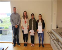 Hin árlega styrkveiting Sveitarfélagsins Voga úr Mennta-, menningar- og afrekssjóði fór fram í tengslum við fund bæjarstjórnar þann 28. júní s.l. Afhentir voru styrkir til þeirra ungmenna sem hafa lokið framhaldsskólanámi á tilsettum tíma, sem og þeim sem eru hálfnaðir með námið á tilsettum tíma. Með þessu móti vill sveitarfélagið sporna við brottfalli nemenda úr námi í framhaldsskóla. Þá var að auki þeim þremur nemendum sem náðu bestum árangri í 10. bekk Stóru-Vogaskóla vorið 2017 veittar sérstakar viðurkenningar í formi styrks. Á meðfyljandi myndum má sjá forseta bæjarstjórnar, Ingþór Guðmundsson, afhenda ungmennunum styrki sína.