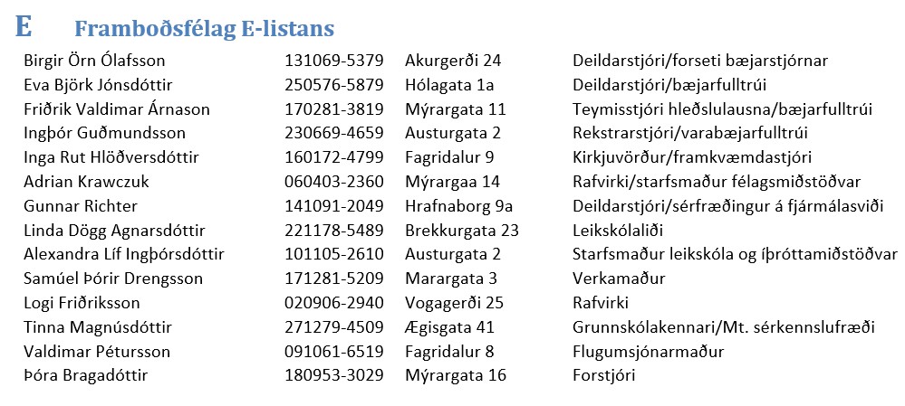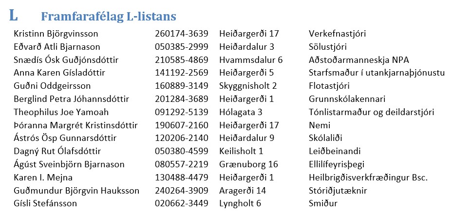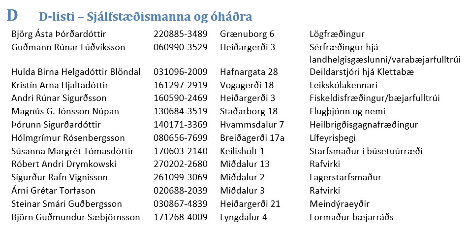 Eftirfarandi framboðslistar bjóða fram í Sveitarfélaginu Vogum.