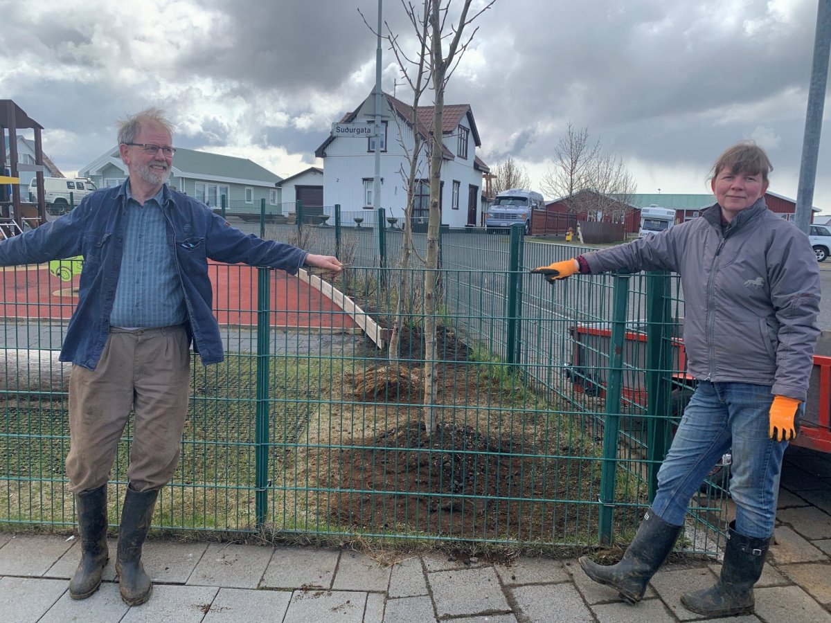 Það lá vel á þeim Þorvaldi Erni Árnasyni og Oktavíu Ragnarsdóttur þegar fréttaritari heimasíðunnar gekk fram á þau drullug upp fyrir haus á lóð Heilsuleikskólans Suðurvalla þar sem þau voru að planta trjám. Eins og sést á meðfylgjandi mynd er um að ræða tvær myndarlegar aspir sem Þorvaldur hefur alið upp og fóstrað í garði sínum. Nú fá trén veglegan sess á leikskólalóðinni þar sem þau munu verða til mikillar prýði og er ekki að efa að þau munum gleðja yngstu borgarana okkar.