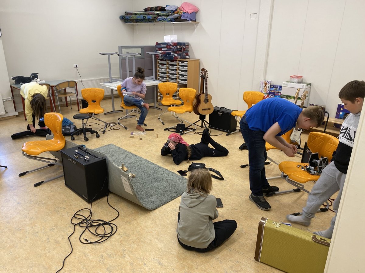 „Á gítar- og tónlistarnámskeiðinu fórum við yfir grunnatriði í tónlist, svo sem rytma og mikilvægi taktsins sem og fyrstu gítargripin. Á ljósmyndanámskeiðinu unnum við mikið með myndbyggingu og hugmyndavinnu varðandi myndatökur, að vera skapandi og leita að skemmtilegum vinklum“.