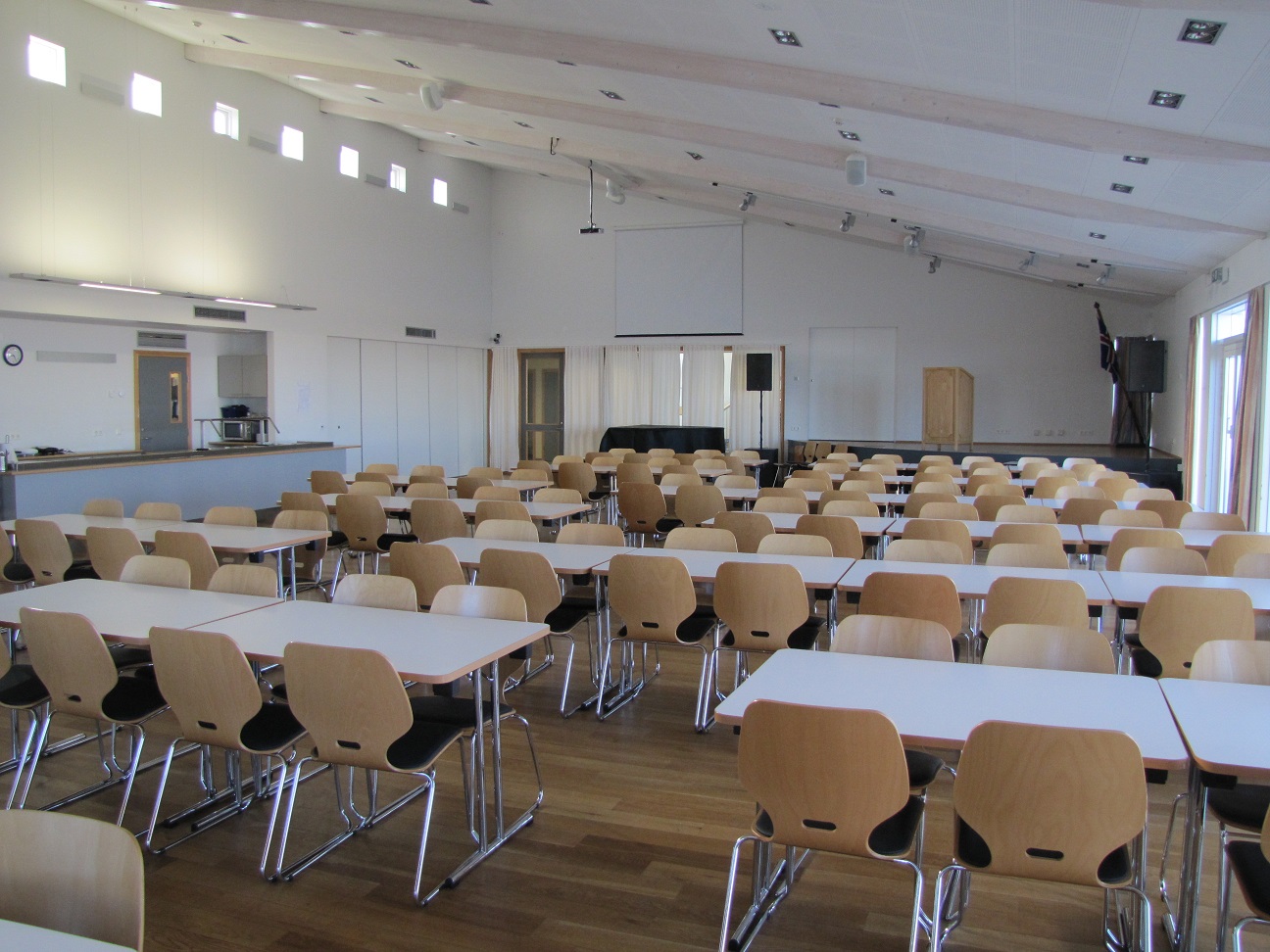 Ef óskað er eftir því að fjölga borðum, stólum og borðbúnaði, þarf að panta það sérstaklega á skrifstofu bæjarins með viku fyrirvara. Salurinn tekur að hámarki 180 manns í sæti.